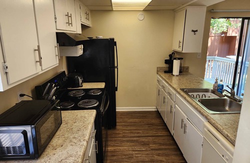 This is an extraordinary end-unit townhome in The Timbers. Designed to be super cozy and relaxing with a large sectional sofa and 65" TV, open kitchen, downstairs laundry and a half bath-Has a deck off the living room. Upstairs is a split bedroom plan each bedroom is large with an on-suite bathroom, 43" stream TV, lots of windows and very quiet. Premium King-Sized beds in each room. Superfast 1G speed internet. THIS IS A NON SMOKING UNIT-1 Pet with a fee. Pet must always be with the owner.