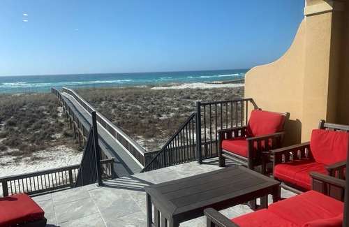 Amazing 2250 square foot oceanfront 4 bedroom, 3.5 bath townhome on Navarre Beach between Destin and Pensacola. This beachfront home has all the extras including travertine tile floors, granite countertops, built in beverage cooler, high ceilings, updated bedding, internet, flat screen TVs, and a spectacular view of the ocean from the main living area and upstairs master bedroom. We take pride in making sure our home offers all the amenities needed to make our guests feel at home.