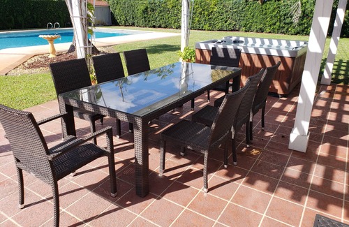 Absolutely beautiful corner property in the Historic Pineapple Park Section of The City of West Palm Beach. Extremely well manicured in every detail. This very elegant property has outdoor amenities with very few equals, the back yard patio is adorned with a beautiful white wooden pergola to shade you from the sun on those hot Florida days. In our patio you will find our lovely new 5-6 person jaquzzi along with our 8 person outdoor dining set, The pool deck area has 2 lounge chairs and is adjacent to our very large backyard. Our 25,000.00 extremely large private pool which glimmers in the sunlight will provide you with hours of enjoyment and refreshment. You will be amazed by this properties amenities and its old world charm! Currently decorated with contemporary "Bermuda" inspired finishes inside and contemporary wicker outdoor patio furniture outside. The outdoor patio is set beside the rear of the home under the pergola and is furnished with a modern gas grill, outdoor dinner table (with seating for 8), and a 2 person swing. Beside the pool you will find wicker lounge chairs and an outdoor table for your drinks and snacks. The home sleeps 8 people very comfortably. It is conveniently located close to Palm Beach International Airport, Downtown West Palm Beach, City Place, Clematis, and 8 minutes to Palm Beach Island Beach. This location is a perfect launching point to all that is fun about living in this vibrant city on the water. Uber or Lyft rides available for $5-$10 to most locations. Plenty of parking if you bring your own car. Boat Tours now available upon request! The only negative to staying at our home is that it is located in a bustling city close to I-95 so if your looking for a no noise vacation this home isn’t for you!