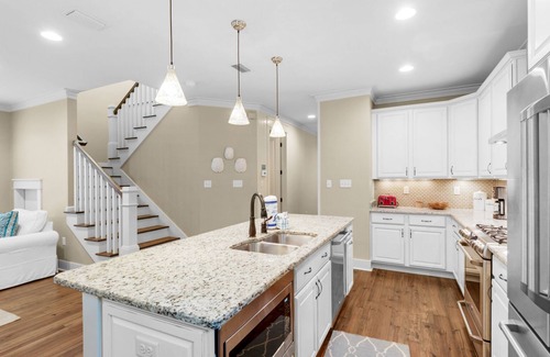 Sunny Side Up is a stunning 3 bedroom + Bonus Room/3.5 bath beach cottage featuring a spacious living area with hardwood flooring, modern fixtures and a large screened in porch. The open kitchen features sleek granite counter tops, gorgeous tile backsplash, an island with bar stools, and stainless appliances including a gas stove for your chef! The 1st floor master suite has a king bed and en suite bath with a walk-in shower plus sitting area. There are two more bedrooms on the 2nd floor, one with a queen bed and private bath and one with 2 twin beds. Additionally, the 2nd floor includes a bonus room with a twin over full bunkbed, and a sleeper sofa in the sitting area. Enjoy a movie on the new 50" TV in the 2nd floor sitting area!You will love all the amenities of WaterSound West, from the gated community with winding trails and boardwalks, to the zero-entry pool with cabanas, grill area and fireplace. Take the bikes to enjoy the beautiful beaches of 30A and create vacation memories of a lifetime at Sunny Side Up!