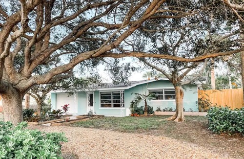 ***No reviews yet as we’ve only rented before through different travel platforms, but we’re excited to now welcome guests from VRBO as well! :)*** Come enjoy tropical Florida in your cozy home-away-from-home that’s just a quick 5 minute drive to sunny Jensen Beach! Our sweet two bedroom cottage, snuggled in the charming neighborhood of Skyline Heights, has a fully fenced in backyard complete with a patio and outdoor shower to rinse off after a sandy day soaking up the sunshine. You’ll adore this mid-century modern styled home with lots of nooks to cozy up in. The mature trees out front create a picturesque setting and natural light pours in the many windows of the cottage which is sure to keep you in a summer state of mind 365 days a year! It has 2 bedrooms (one king, one queen) with spacious closets and a daybed in the common area. The cottage’s appliances include all full size: washer, dryer, refrigerator, dish washer and microwave as well as a screened in back porch and additional outdoor patio area. Downtown Jensen Beach is just .5 miles away filled with various restaurants and, of course, Thursday night’s Jammin Jensen (the town’s weekly mini-festival of local artists’ displays, music, vendors and family entertainment)! Lots of dining options and stores are available within walking distance including Publix, CVS, Walgreens, etc. We've also added a patio in the backyard perfect for grilling out or soaking in some warm Florida sunshine! Photos will be added soon. NO SMOKING on the property.