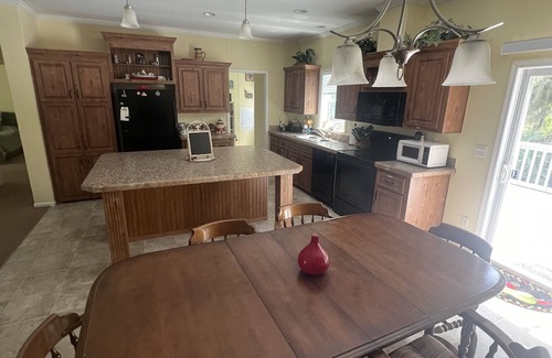 Come enjoy this waterfront property on one acre with park like setting with its cozy deck with lake and nature views and its little dock with its picnic table and Kayak/Canoe launch. Cast for a fish from the dock or take a ride in the canoe and 2 kayaks at your disposal to discover the beautiful canal that takes you to Private Lake Holden. Sight see an abundance of Florida widlife. Beautiful birds such as Egrets, Ibis roam the property. Room to roam for the kids. Kids can play in the yard while you sip a drink on the back deck. Use the bond fire area to grill marshmallows with friends and family at night. A charcoal grill is also available.
