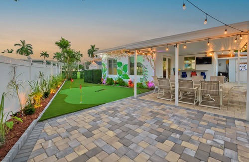 Our unique property features a delightful tiki hut with bar, miniature golf, heated swimming pool with your own private dock and access to the canal creating a picturesque oasis for your vacation. Relax with the whole family at this peaceful place to stay.