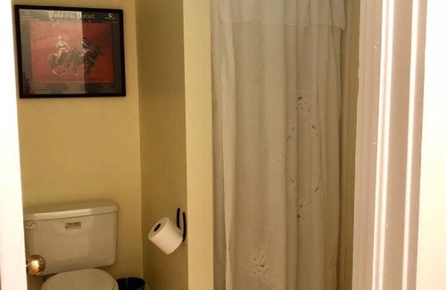Little Lob Lolly is a pet friendly bedroom and bathroom with a shower only. It may not be a good fit for the elderly. It offers wifi, cable, new refrigerator, new keurig coffee maker, new electric tea pot, a few coffee and tea singles, a new air conditioner, starched white sheets with a fluffy white comforter and spread, plus plenty of fluffy white towels. This private comfortable room is located in our classy horse barn. It's squeaky clean, and has loads of charm.