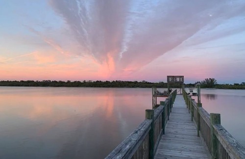 Minutes from charming New Smyrna Beach and an hour from Orlando, Oyster Zen is an extraordinary property. Dolphins and manatees abound, often swimming just inches from the dock. Crab or fish from the dock, take the kayaks or paddle boards to the sandbar across the way (kayaks/paddle boards are onsite at OZ and available to rent through Nichols Surf Shop), or just relax in the heated pool. There is so much natural beauty at a location with quick access to all kinds of fun and entertainment.