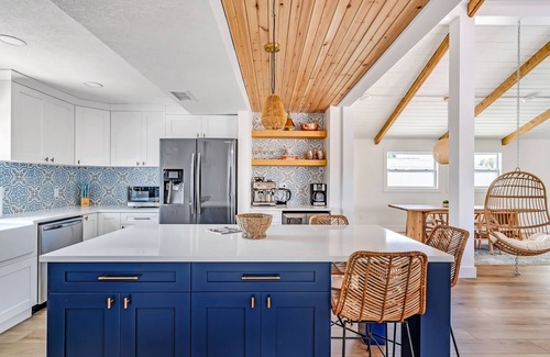 Step inside and be greeted by a completely renovated and tastefully decorated space that exudes comfort and serenity. With a soothing color palette and coastal-inspired decor, our property instantly puts you at ease. Sink into the plush sectional or the swinging egg chairs and unwind in the cozy living area, or gather with loved ones for a friendly game night with the family games provided.