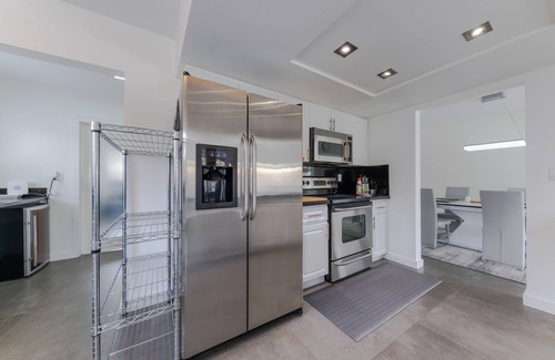 Relax with the whole family at this peaceful location. This Fort Lauderdale home features 3 bedrooms, 2 bathrooms, full kitchen and a cozy common area. Backyard has a large pool and a hot tub. This home is situated in a residential neighborhood, perfect for a family getaway. Come take advantage of the beautiful near by beaches, great restaurants, and the rest of sunny South Florida.