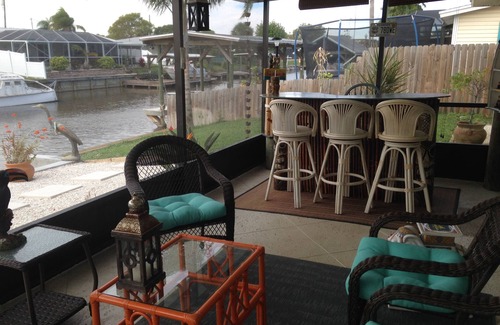 Outback you will find a covered screened patio with a sitting area and a tiki bar. Bring your own beverage and watch the beautiful sunsets down the canal.