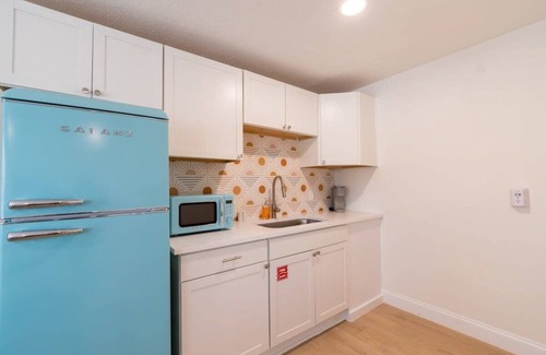 Step into your own slice of paradise at The Juni . This newly renovated 1 bedroom 1 bath condo is thoughtfully designed with an East Coast theme, immersing you in the vibrant beach culture of Cocoa Beach. The unit features a bright and airy kitchenette, with a fridge and microwave, allowing you to prepare delicious bite to eat after a day of fun in the sun.